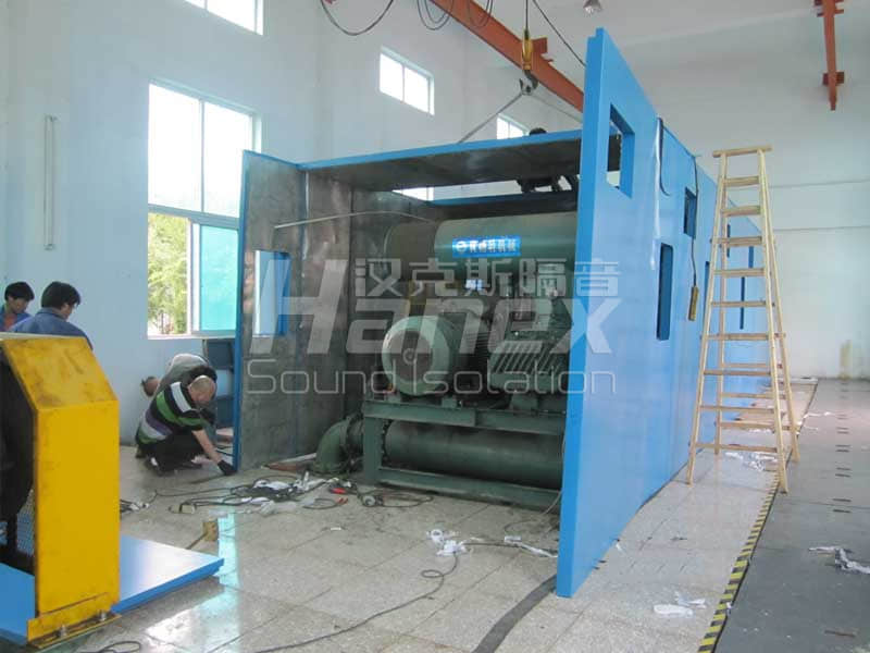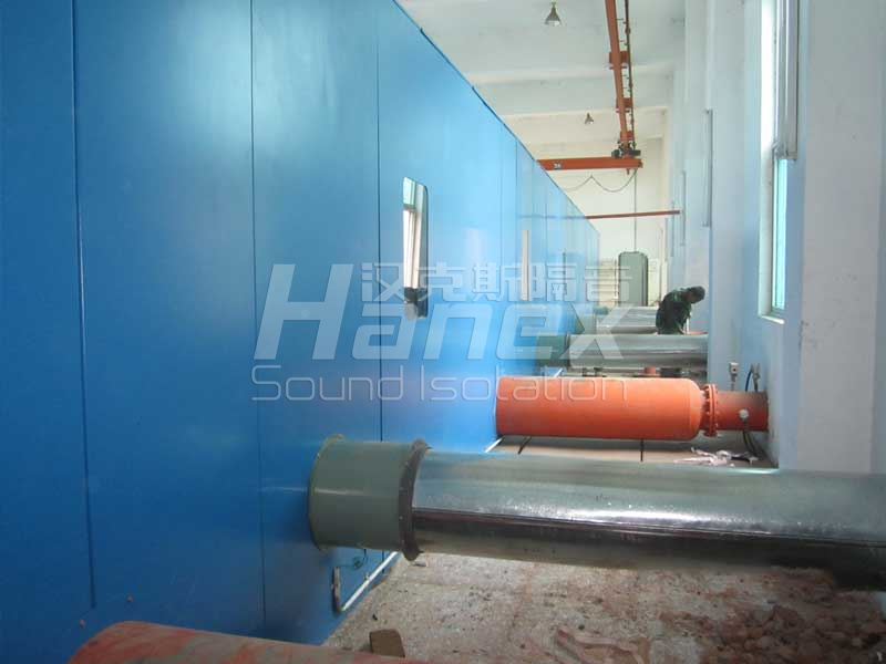 案例簡介:廠內(nèi)有5臺羅茨鼓風(fēng)機(jī),單臺風(fēng)機(jī)功率為132Kw,5000m3/hr,運(yùn)行時(shí)噪聲值在105dB(A)以上。治理后,在隔聲罩1米處噪聲值小于85dB(A),達(dá)到規(guī)定值。