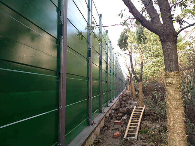 3、 隔聲屏障屏體??紤]到降噪工程的使用壽命,我們采用75mm厚金屬吸隔聲屏體作為降噪結構,平均吸聲系數(shù)在0.80以,屏體內部用多層憎水玻璃棉與纖維布結構。