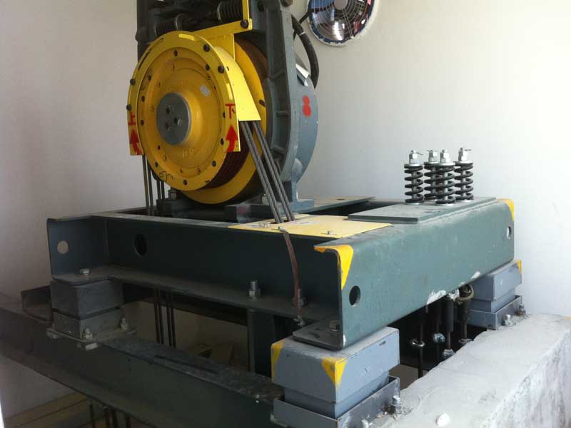 在電梯曳引機(jī)底座加裝分體式金屬減振平臺,將振動聲源與地面、四周的墻體做隔離;電梯的主要固體剛性連接替換成軟性彈性連接,削弱剛性連接的傳聲;根據(jù)具體的噪聲情況對電梯機(jī)房、室內(nèi)等進(jìn)行低頻噪音治理。