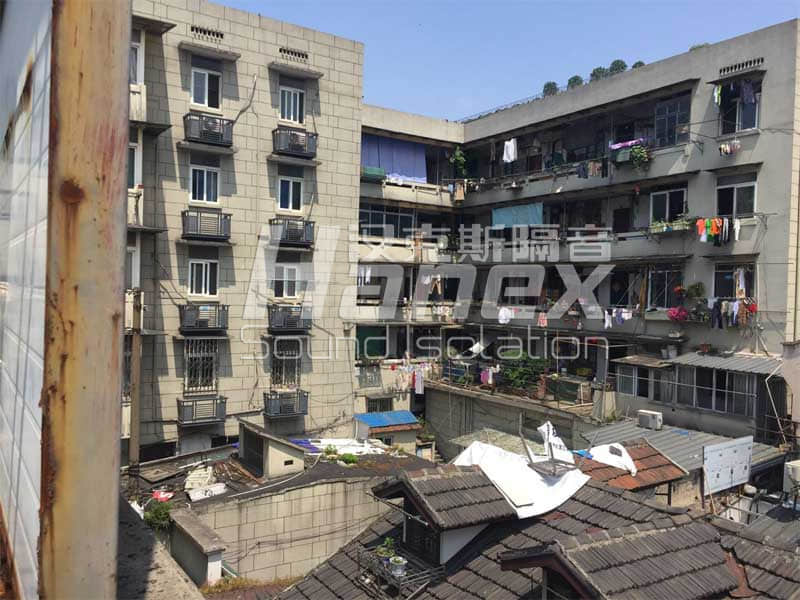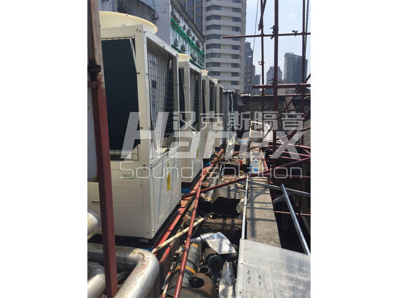 漢庭酒店(杭州西湖仁和路店)北側(cè)客房樓屋面安裝五組VRV空調(diào)主機(jī),空調(diào)機(jī)主同時運行時噪聲值可達(dá)到75~80分貝。在設(shè)備的北面是居民住宅樓,設(shè)備運行對該區(qū)域居民聲環(huán)境產(chǎn)生一定的影響,同時對相鄰的客房樓產(chǎn)生噪聲污染。