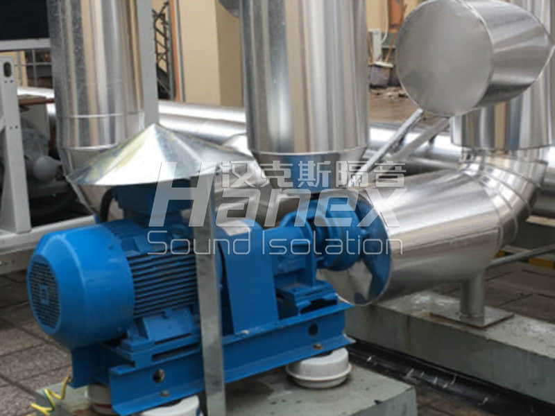 海寧四院住院樓平臺安裝有一組中央空調(diào)外機,空調(diào)正常開啟狀態(tài)下層辦公區(qū)及病房區(qū)測量噪聲值達56分貝。漢克斯隔音設計1.空調(diào)機組減振(空調(diào)減震器),2.進水管道減振,達到空調(diào)開啟時下層病房內(nèi)夜間測量值低于40分貝。